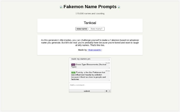 Fakemon Name Prompts Perchance Org