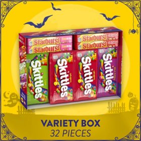 36 single packs skittles original fruity candy theater box 35 oz. Skittles consist of hard sugar shells imprinted with the letter sthe interior consists mainly of sugar corn syrup and hydrogenated palm kernel oil along with fruit juice citric acid natural and artificial flavors. Available in store only. Skittles america mix red white blue patriotic candy 41 ounce party size bag skittles america mix red white blue patriotic candy 14 ounce bag skittles original candy 217 oz.